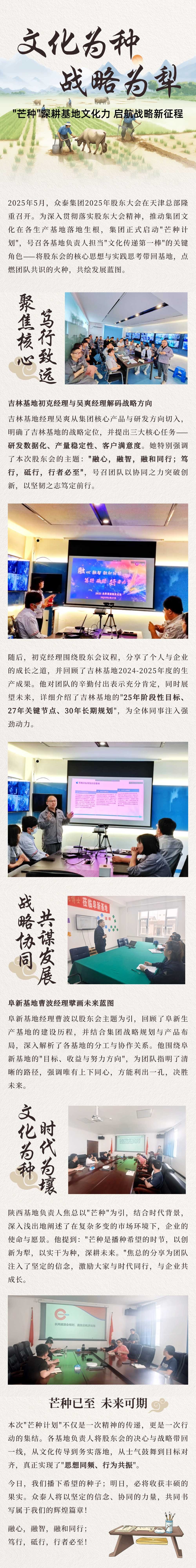 5月,為深入貫徹落實(shí)股東大會(huì)精神,推動(dòng)集團(tuán)文化在各生產(chǎn)基地落地生根,集團(tuán)正式啟動(dòng)"芒種計(jì)劃",號召各基地負(fù)責(zé)人擔(dān)當(dāng)